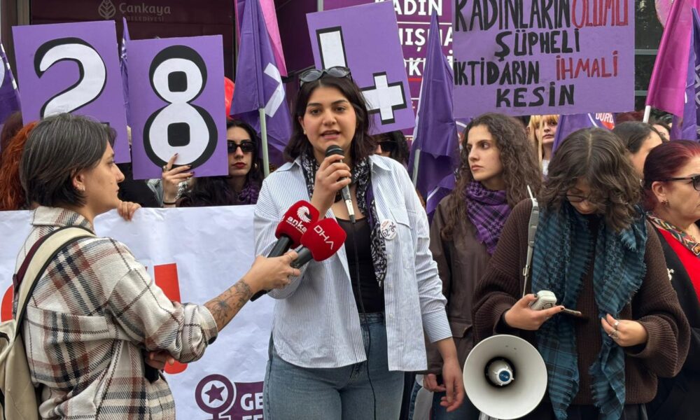Kadın Cinayetlerini Durduracağız Platformu, 25 Kasım Kadına Yönelik Şiddetle Uluslararası Mücadele Günü nedeniyle Kurtuluş Parkı önünde bir araya geldi. Ellerinde Kadın ölümlerine hayır yazılı dövizler taşıyan kadınlar, sloganlar atarak Sakarya Caddesine yürüdü. Yürüyüşe, Genç Feministler Federasyonu ve sivil toplum kuruluşlarının yanı sıra CHP İl Kadın Kolları Başkanı Ayça Çağlar Uzundağ katıldı. Sakarya Caddesinde grup adına açıklama yapan Kadın Cinayetlerini Durduracağız Platformu temsilcisi Işıl Kurt, “Biz yıllardır, kadın cinayetlerinin ve kadına yönelik şiddetin temelinde toplumsal cinsiyet eşitsizliği var derken, bu ülkenin Aile Bakanı diyor ki; ‘toplumsal cinsiyet muğlak bir kavramdır, kullanmayın. Hayır, toplumsal cinsiyet muğlak değil. Ama bizim toplumsal cinsiyet eşitliğini sağlamak için verdiğimiz mücadele gayet net. 287 şüpheli kadın ölümü var ve hiçbiri aydınlatılmadı. Mahinur Özdemir Göktaş, bu ülkede şüpheli kadın ölümlerinin, kadın cinayetlerini geçtiği dönemin tek bakanı olarak tarihe kazınacak. Ayrıca biz her gün burada haklarımız için mücadele ederken, Orta Doğuda, Filistinde de kadınlar özgürlükleri için her gün mücadele ediyorlar. Orta Doğuda, Filistinde özgürlükleri için mücadele eden kadınlarla bizim mücadelemiz ortaktır. Biz her zaman savaşa karşı onurlu bir barışın yanında olacağız” dedi.