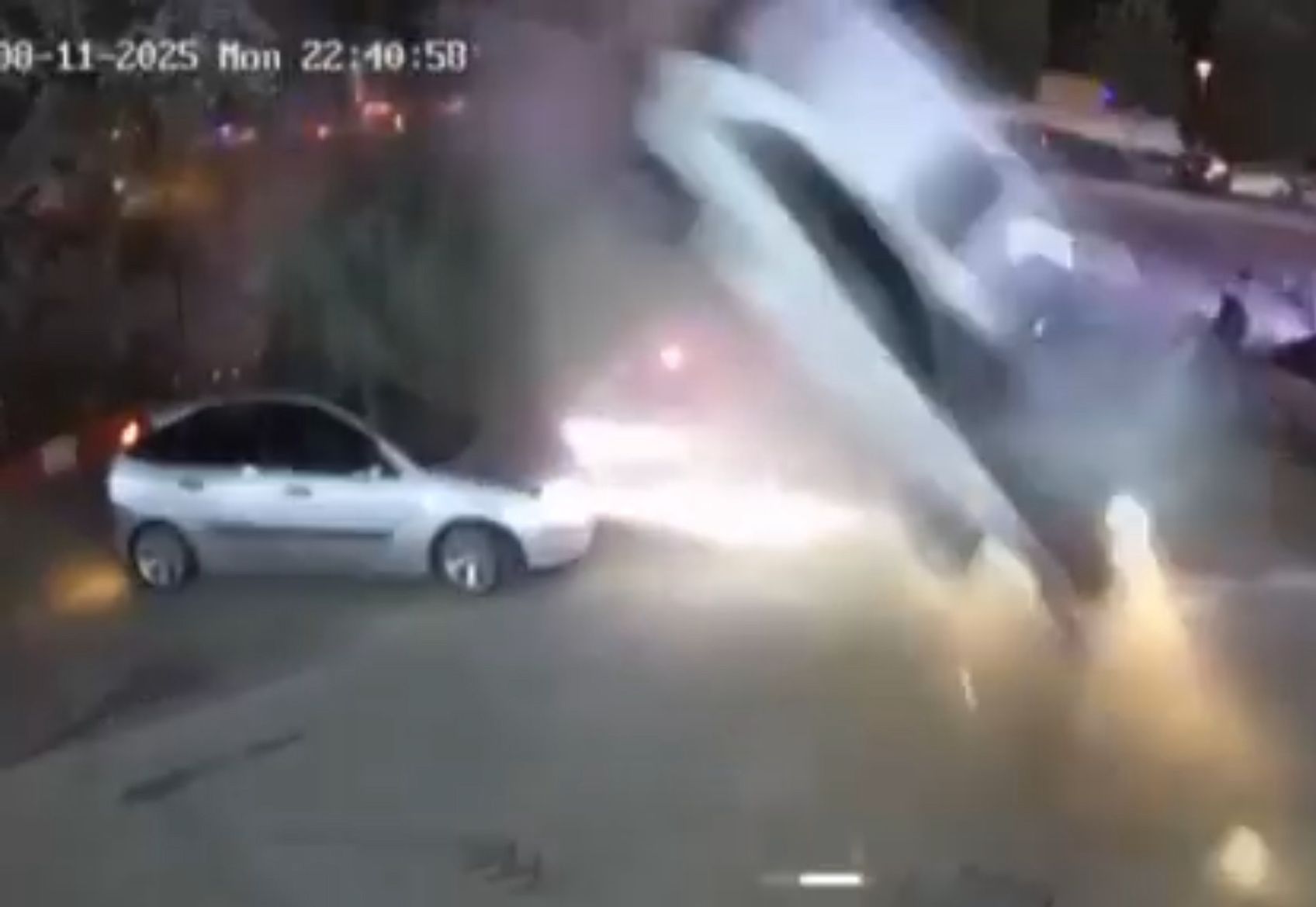 • Ankara'nın Sincan ilçesinde kaldırıma çarparak havalanan otomobilin, oto yıkamacı önündeki 3 aracın üstünden geçip takla atarak taksiye çarptığı kaza anı güvenlik kamerasına yansıdı. Fotoğraf: Ankara, (DHA)