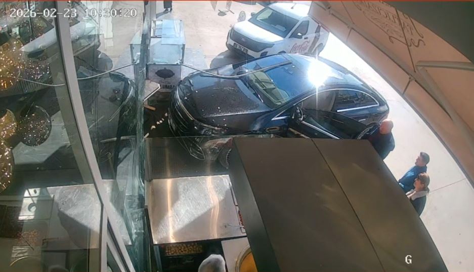 Kaza, dün Bağlıca Bulvarında meydana geldi. Sürücüsünün direksiyon hakimiyetini kaybettiği otomobil, kontrolden çıkarak yol kenarındaki pastanenin camına çarpıp, içeriye girdi. Kazada can kaybı ve yaralanma olmadı. Kazadan 10 saniye önce pastaneye giren bir içecek firması görevlisi aracın altında kalmaktan son anda kurtuldu. Araçta ve iş yerinde hasar oluşurken, kaza anı ise güvenlik kamerasına yansıdı.