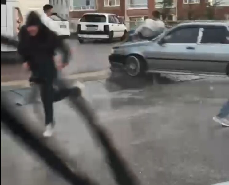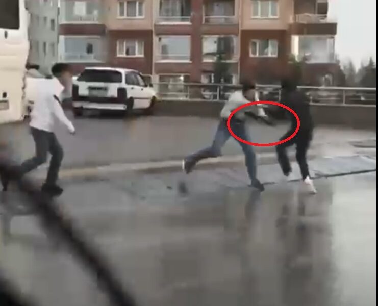 Olay, dün öğle saatlerinde Mamak ilçesi Durali Alıç Mahallesi 928inci Caddede meydana geldi. Aralarında husumet olduğu belirtilen iki grup, sokakta buluşarak tartışmaya başladı. Tartışmanın büyümesi ile bir kişi, yanında bulunan pompalı tüfeği çıkararak ateş etmeye çalıştı ancak silah ateş almadı. O sırada karşı taraftan biri, otomobille elindeki pompalı tüfek olan kişiye çarparak kaçtı. Çevredekiler tarafından cep telefonuyla görüntülenen kavgada E.E.B., hafif yaralandı.