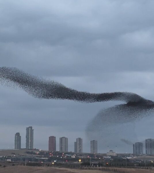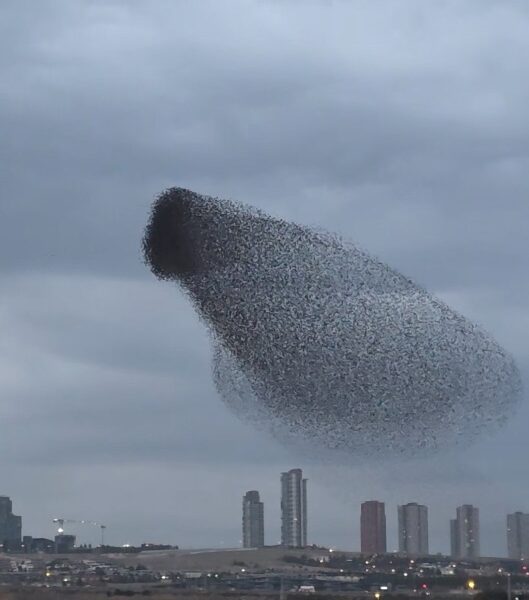 Ankara’da sığırcıkların gökyüzündeki dansı kamerada