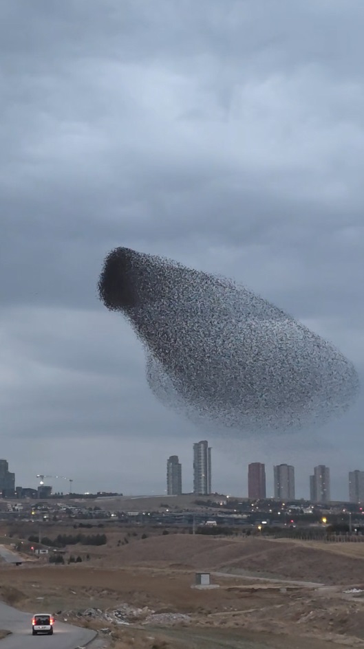 • Ankara'da kent merkezine akın eden binlerce sığırcık kuşu, gökyüzünde dans etti. O anlar cep telefonu kamerasına yansıdı. Fotoğraf: Ankara, (DHA)