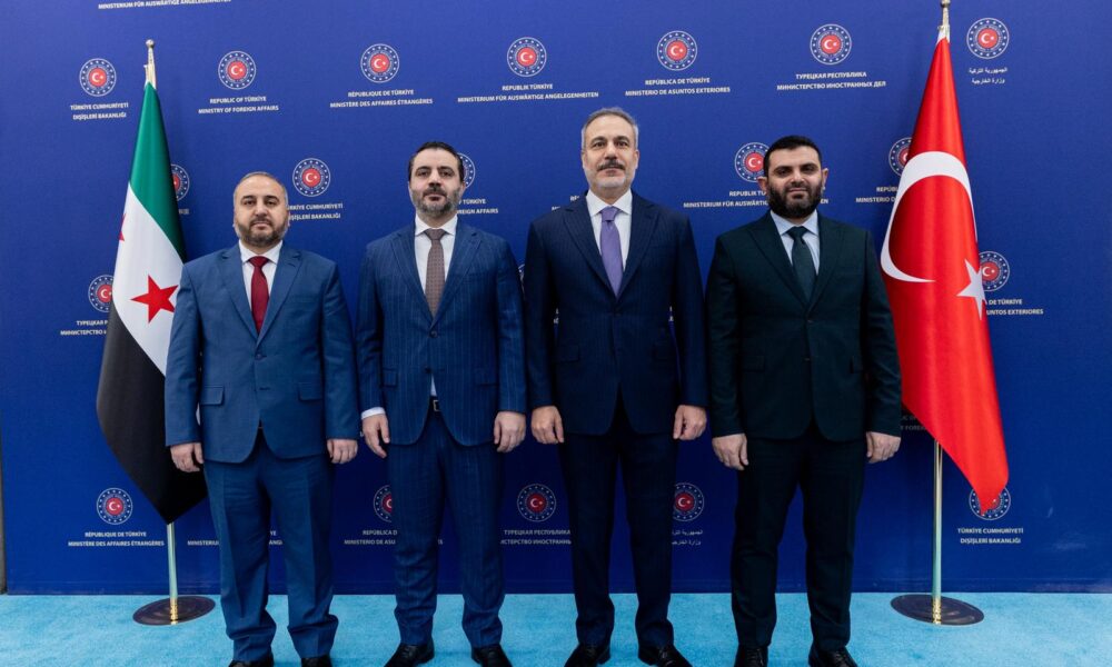 • Soldan sağa: Suriye Milli Savunma Bakanı Murhef Ebu Kasra, Suriye Dışişleri Bakanı Esad Hasan Şeybani, Dışişleri Bakanı Hakan Fidan ve Suriye İstihbarat Başkanı Hüseyin Es-Selame. Fotoğraf: Ankara, (DHA)