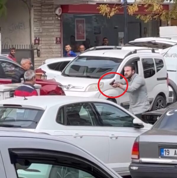 Olay, sabah saatlerinde, Çankaya ilçesi Emek Mahallesinde meydana geldi. İddiaya göre, otomobiliyle otoparktan çıkmaya çalışan sürücü, çıkışını kapattığını ileri sürdüğü 19 ACF 524 plakalı otomobilin sürücüsüne tepki gösterdi. İki sürücü arasında tartışma çıktı. Otopark çıkışını engellediği öne sürülen sürücü araçtan sopayla inerken, diğeri de üzerindeki tabancayı çıkardı. Sürücünün, diğer sürücüye tabancayı doğrultup tehdit ettiği anlar, cep telefonu kamerasına yansıdı. Çevredekilerin, elinde silah bulunan sürücüyü sakinleştirmeye çalışması da görüntüde yer aldı.