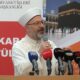 Erbaş, “Biz Diyanet İşleri Başkanlığı olarak şu andan itibaren yurdumuza, vatanımıza ve yuvalarınıza dönünceye kadar sizin yanınızdayız. Kafile başkanlarımız görevlilerimiz sağa sola bakıp; ben kayboldum, benim bir ihtiyacım var, kime danışayım?’ diye artık zorlanmıyorsunuz. Orada sağa da baksanız bir mavi yelekli hocamızı göreceksiniz. Sola da baksanız bir mavi yelekli hocamızı göreceksiniz. Kabede göreceksiniz, Beytullahta tavaf esnasında göreceksiniz; Arafatta göreceksiniz, Mescid-i Nebevide göreceksiniz. Diyanet İşleri Başkanlığı olarak 4-5 bin arası hocamızla size hizmet etmek için oradayız. 2023 yılında, dünyanın hacılarına en fazla çeşitlilikte hizmet eden birincilik ödülünü aldık. Türkiye Hac Organizasyonu olarak Diyanet İşleri Başkanlığı olarak 2024 yılında en disiplinli hac organizasyonu dünya birinciliği ödülünü aldık. Bu ödülü alırken hacılarımızın çok büyük katkıları var” dedi.