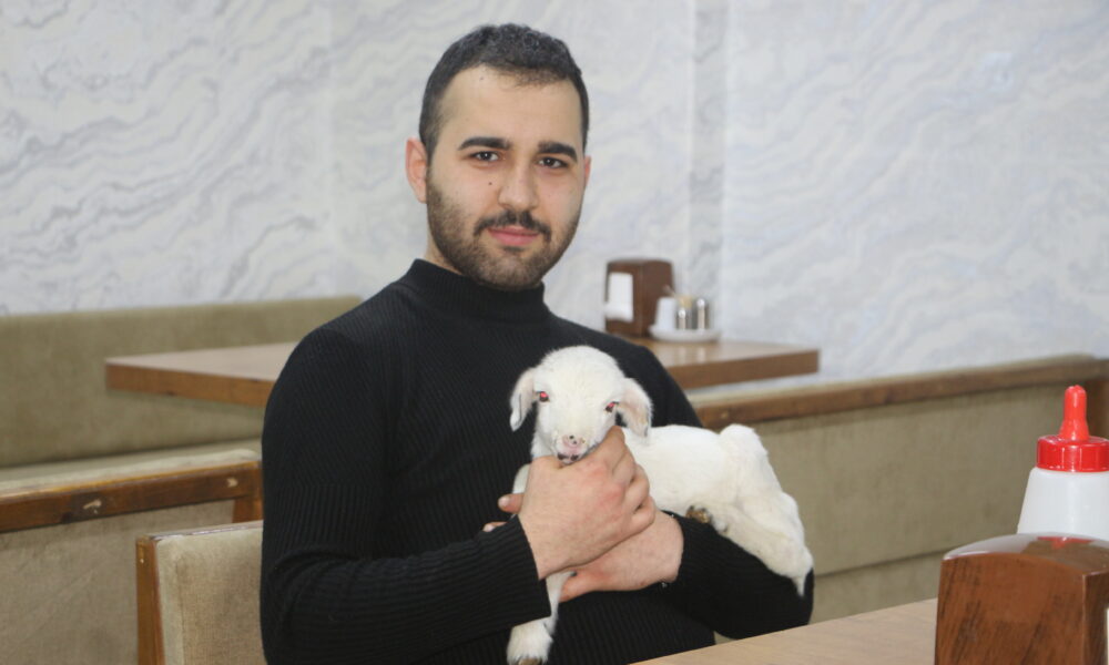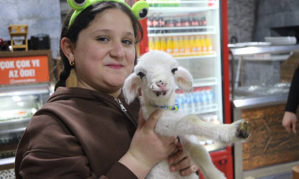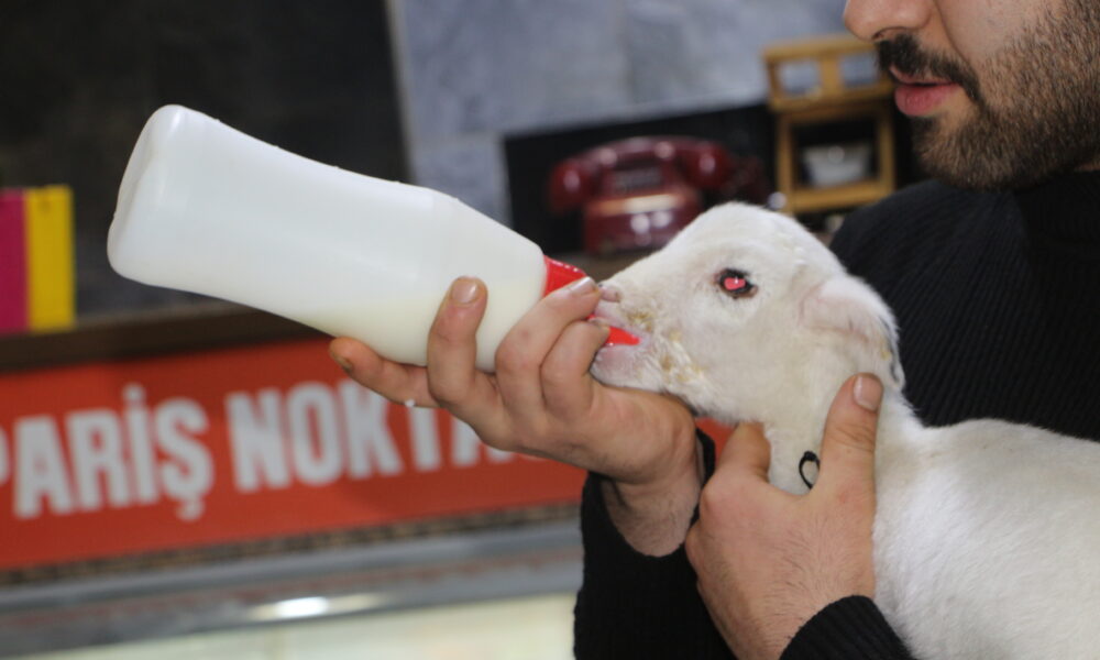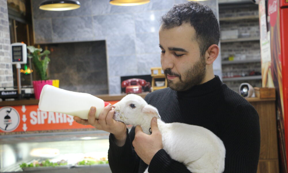 Annesi ölen kuzu lokantanın maskotu oldu; biberonla besliyorlar