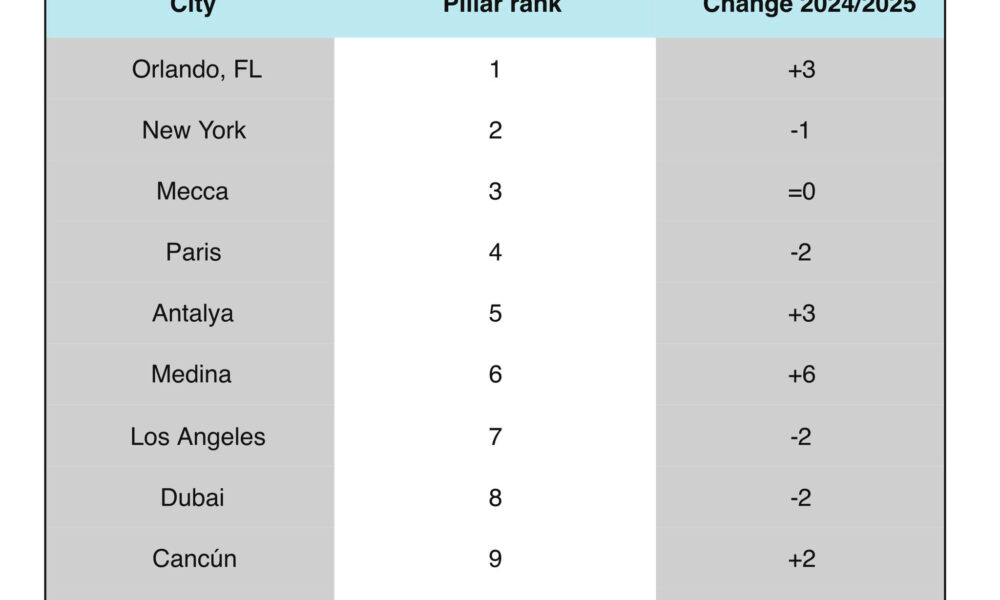 Listede son zamanlarda ilk sıralarda yer alan Bangkokun güvenlik kaygıları, bölgesel rekabet ve yerel para birimi güçlenmesine rağmen 30 milyon ziyaretçi alan tek destinasyon olduğunu belirten Yavuz, “Hong Kong 2nci (23,2 milyon), Londra 3üncü (22,7 milyon), Macau 4üncü (20,4 milyon), İstanbul 5inci (19,7 milyon), Dubai 6ncı (19,5 milyon), Mekke 7nci (18,7 milyon), Antalya 8inci (18,6) milyon), Paris 9uncu (18,3 milyon) ve Kuala Lumpur 10uncu (17,3 milyon). Listede Antalya dışındakilerin hepsi şehir destinasyonu. Resort tatil destinasyonu olan tek yer geçen yıla göre yüzde 8 artmış olan Antalya” diye konuştu.