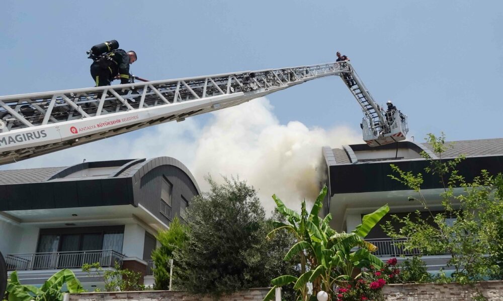 Yangın, saat 12.30 sıralarında Konyaaltı ilçesi Molla Yusuf Mahallesi 1465 ve 1476 sokakların kesişiminde yer alan Boğaçay Villalarında meydana geldi. Tripleks A2 olan villanın sauna odasında başlayan yangını gören ev sahibi Peren Keşçi, hemen müdahale etmek istedi. Yangını söndürmekte başarılı olamayan Keşçi, dışarıya çıkarak durumu 112 Acil Çağrı Merkezine bildirdi. İhbarla bölgeye polis, itfaiye ve sağlık ekibi sevk edildi. Kısa sürede olay yerine gelen itfaiye ekipleri, yangını söndürmek için çalışmalara başladı. Polis ekipleri çevre güvenliği alırken, ev sahibi Keşçinin yakınları da olay yerine geldi. Keşçi ve yakınları, söndürme çalışmalarını endişeli gözlerle izledi. İtfaiye ekiplerinin 30 dakikalık çalışmasıyla yangın, söndürüldü. Villanın çatı katında yer alan sauna odasında başlayan yangının, elektrik kontağından çıktığı üzerinde duruluyor.