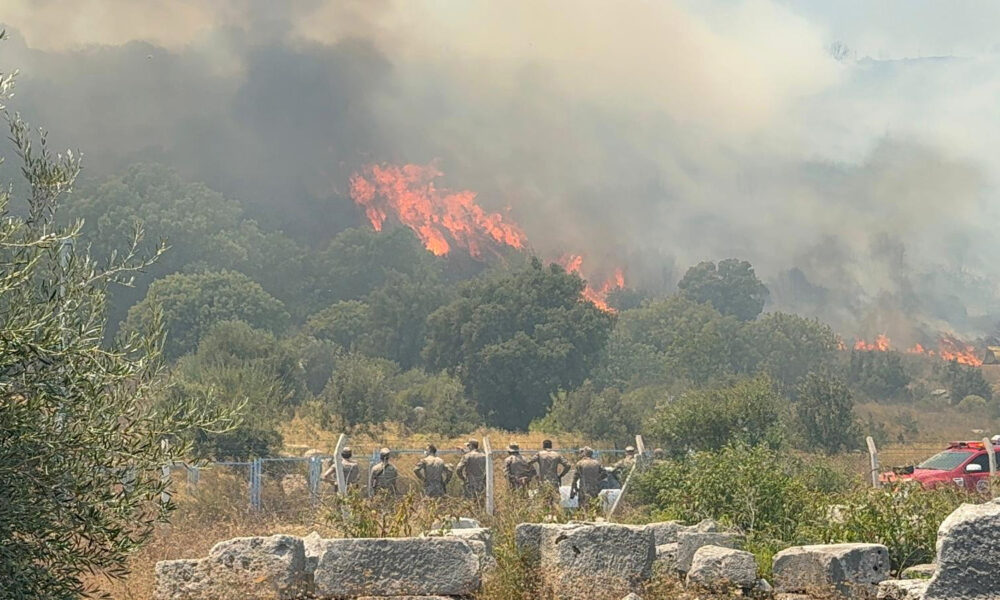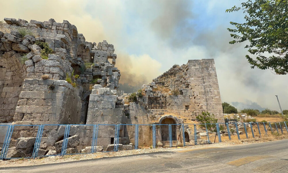 Antalya'nın Aksu ilçesi Kurşunlu Mahallesi'ndeki yangın kontrol altına alınıp, soğutma çalışmaları sürerken; bu kez Atatürk Caddesi üzerinde Perge Antik Kenti'ne yakın noktada yeni bir orman yangını çıktı. Fotoğraf: Adem AKALAN/Antalya, (DHA)