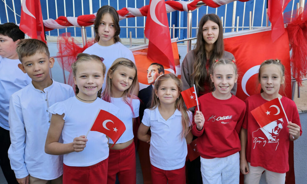 TÜRKİYE Cumhuriyeti'nin kuruluşunun 101'inci yılı kutlamaları Antalya'da başladı. Cumhuriyet Bayramı sevincini paylaşan Ukraynalı çocuklar, Cumhuriyet ve Atatürk konulu şiir okudu. Fotoğraf:Antalya, (DHA)