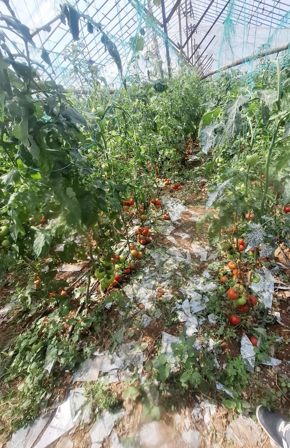 Antalya'nın Serik ilçesinde etkili olan dolu ve hortum, tarım alanlarında ciddi hasara neden oldu. Fotoğraf: Serik (Antalya), (DHA)