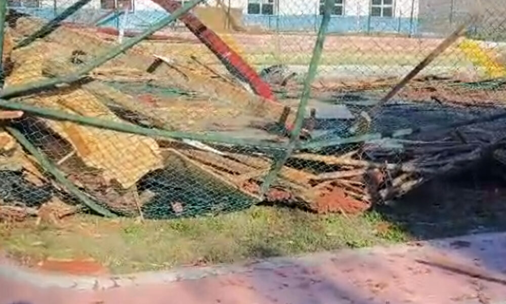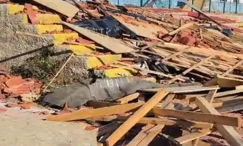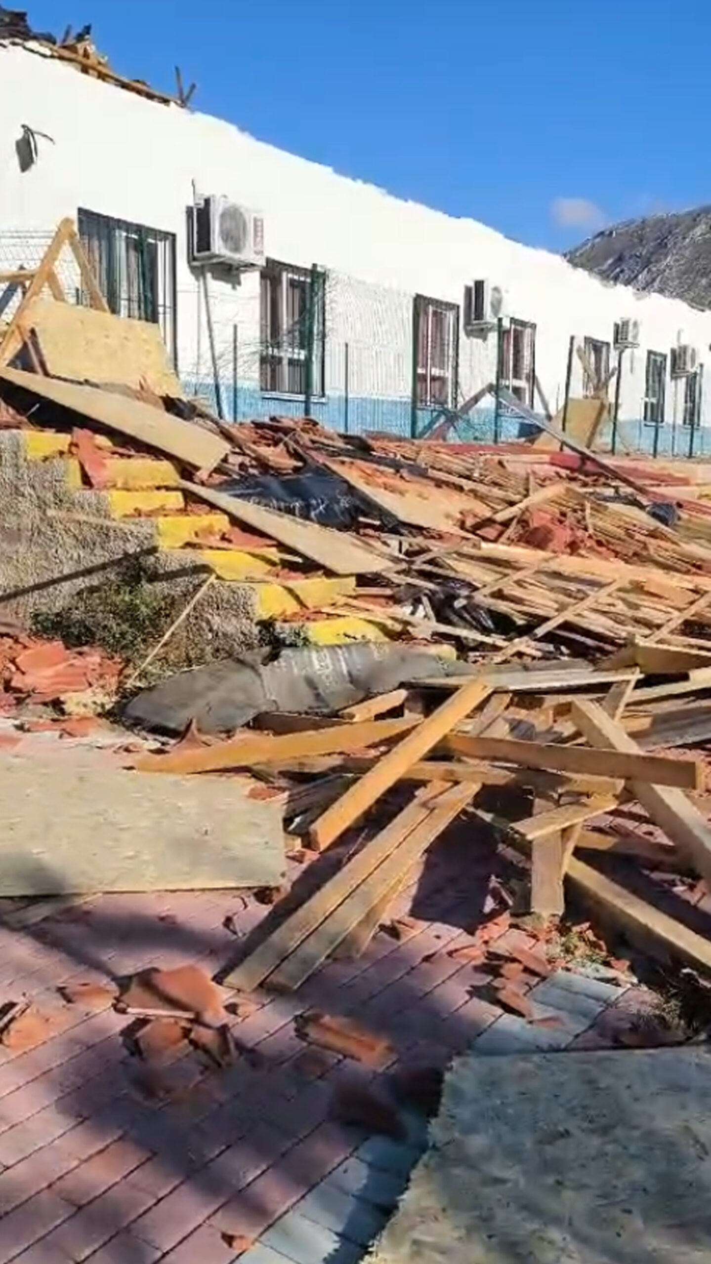 Manavgat'ın Karavca Mahallesi'nde etkili olan fırtına Değirmenli İlk ve Ortaokulu'nun çatısını uçurdu. Fotoğraf:Manavgat (Antalya), (DHA)