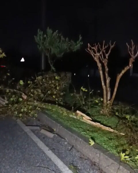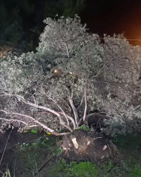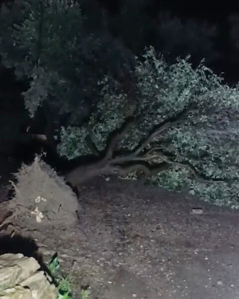 Antalya'nın Manavgat ilçesinde gece saatlerinde denizden gelen hortum, çok sayıda ağacın kökünden sökülüp devrilmesine neden oldu. Fotoğraf: Antalya, (DHA)