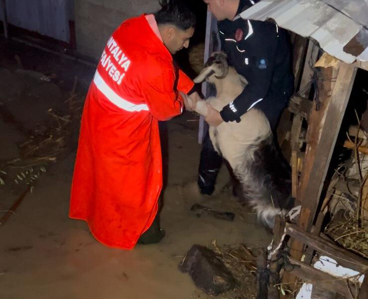 Antalya’nın Manavgat ve Serik ilçelerinde etkili olan sağanak sonrası Antalya Büyükşehir Belediyesi ve ASAT ekiplerince ihbarlara müdahale edildi. Fotoğraf: Antalya, (DHA)
