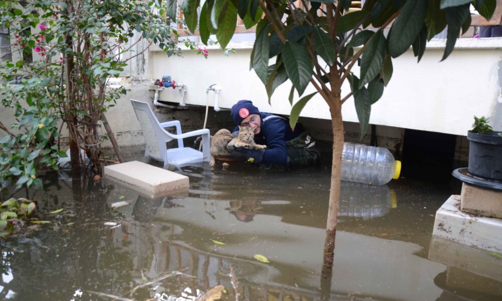 İlçedeki yağışlar sokak hayvanlarının yaşamını da olumsuz etkiledi. Belek Mahallesinde bir apartmanın bahçesine dolan sudan korunmak isteyen sokak kedisi, balkon altındaki boşlukta mahsur kaldı. Kedinin sesini duyanların ihbarı üzerine apartmana itfaiye ekibi geldi. Ekipler, yaklaşık yarım metre yüksekliğinde su dolan bahçede balkon altında sığınan kediyi telefon ışığı kullanarak buldu. Kurtarılan kedi, kuru alana bırakıldıktan sonra uzaklaştı.