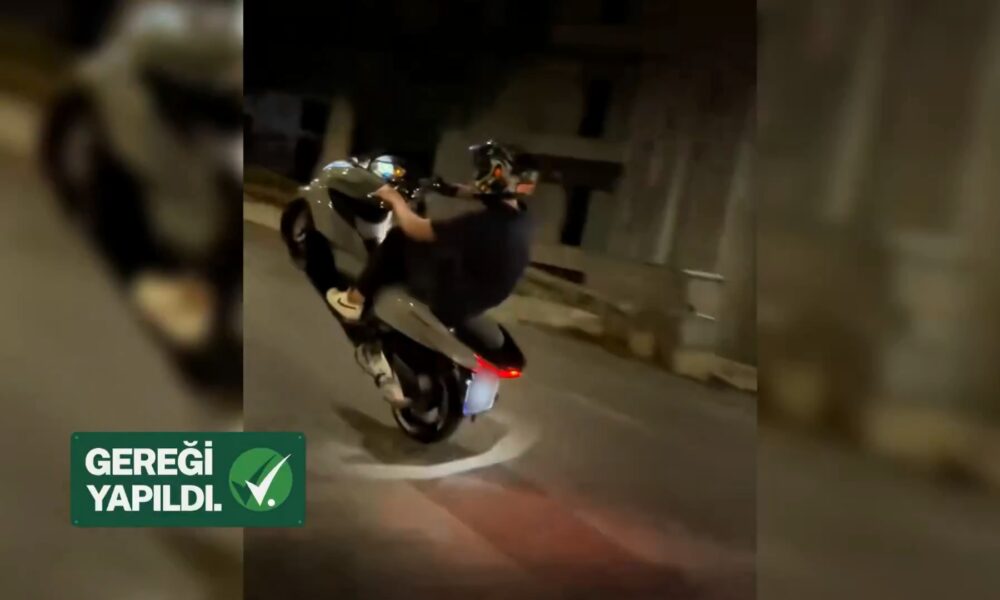 Bakan Yerlikaya, motosikletin ön tekerleğini kaldırarak trafik güvenliğini tehlikeye düşüren sürücü Ö.E.nin yakalandığını belirterek, “Motosiklet sürücüsüne 2918 sayılı Karayolları Trafik Kanunu’nca idari para cezası uygulandı. İlk kez Yeni Trafik Kanunu Teklifine giren maddeye göre: akrobatik hareketler yapan, sürücüye 46 bin TL idari para cezası uygulayacağız, sürücü belgesini 60 gün süreyle geri alacağız, geriye doğru 5 yıl içinde 2nci defa geri alınanların sürücü belgelerini iptal edeceğiz. Araçlarını 60 gün süreyle trafikten menedeceğiz. Trafikte akrobatik hareketler yaparak hem kendi canını hem de vatandaşlarımızın güvenliğini tehlikeye atan sürücüleri gördüğünüzde lütfen 112 Acil Çağrı Merkezimize bildirin. Biz gereğini yaparız” ifadelerini kullandı.