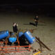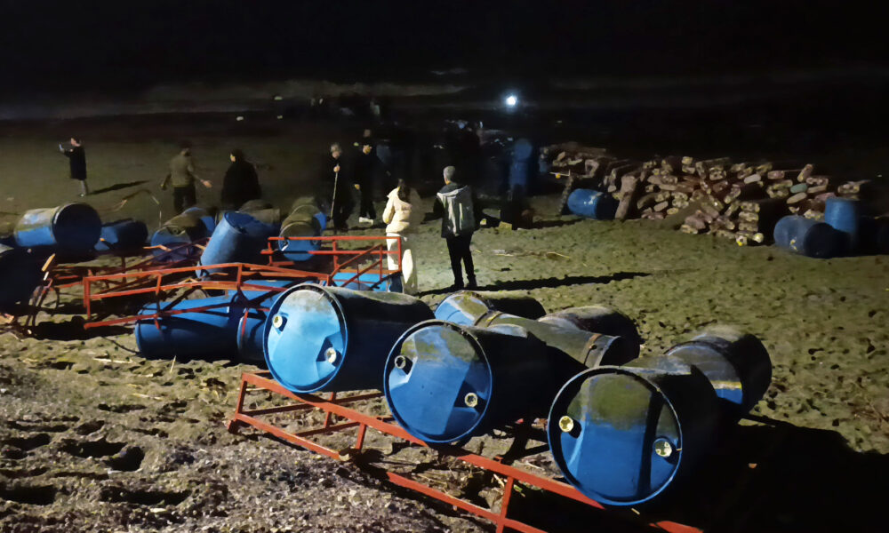 Sağanağın etkili olduğu Alanya'da su seviyesi yükselen Dimçayında kurulu çardaklar debinin yükselmesi sonucu akıntıya kapılarak denize kadar ulaştı. Fotoğraf:Alkın BİRİCİK/Antalya,(DHA)