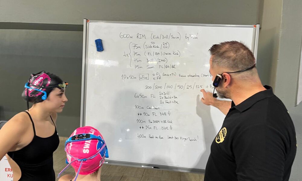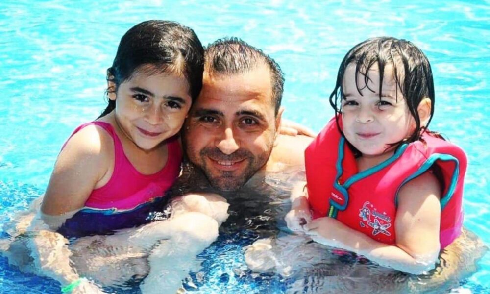 İzmirli milli yüzücü Barış Arslan'ın (Sağda) kızları Jasmin (Solda) ve Juliet (Ortada), küçük yaşta başladıkları yüzme sporunda dikkat çeken başarılara imza atıyor. Fotoğraf: Yağmur ÖNGÜN/İzmir,(DHA)
