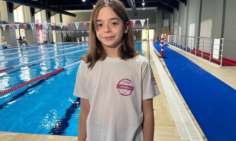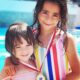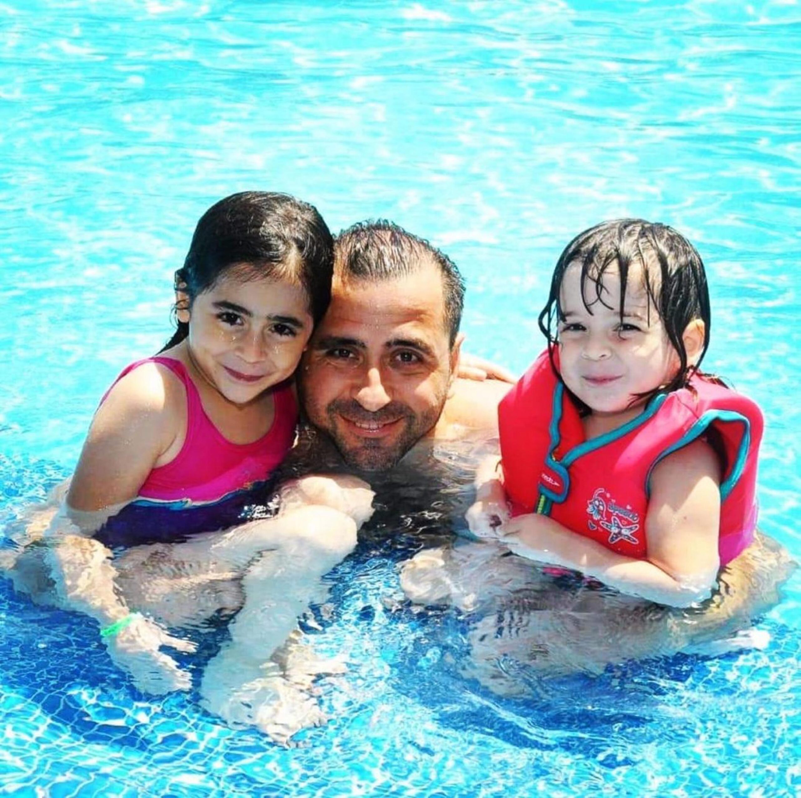 İzmirli milli yüzücü Barış Arslan'ın (Ortada) kızları Jasmin (Solda) ve Juliet (Sağda), küçük yaşta başladıkları yüzme sporunda dikkat çeken başarılara imza atıyor. Fotoğraf: İzmir,(DHA)