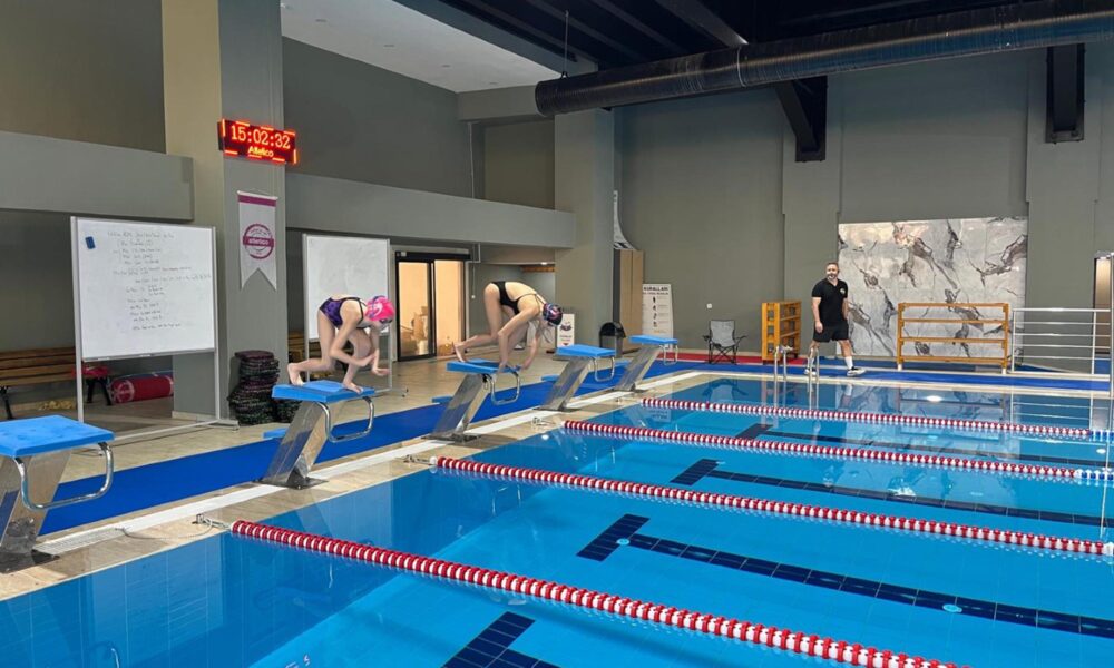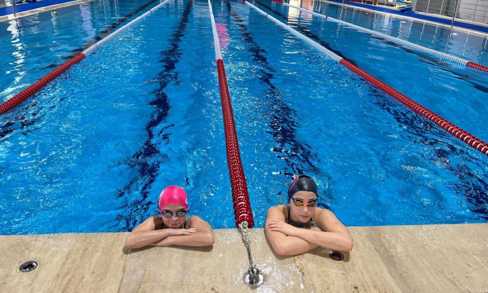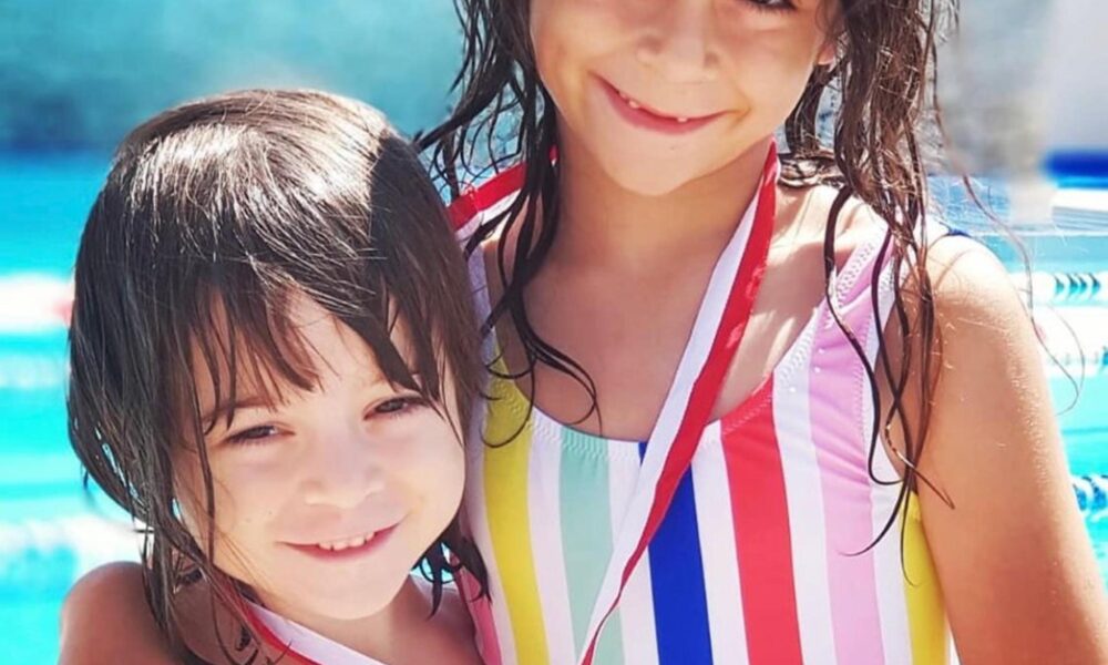 İzmirli milli yüzücü Barış Arslan'ın kızları Jasmin (Sağda) ve Juliet (Solda), küçük yaşta başladıkları yüzme sporunda dikkat çeken başarılara imza atıyor. Fotoğraf: İzmir,(DHA)