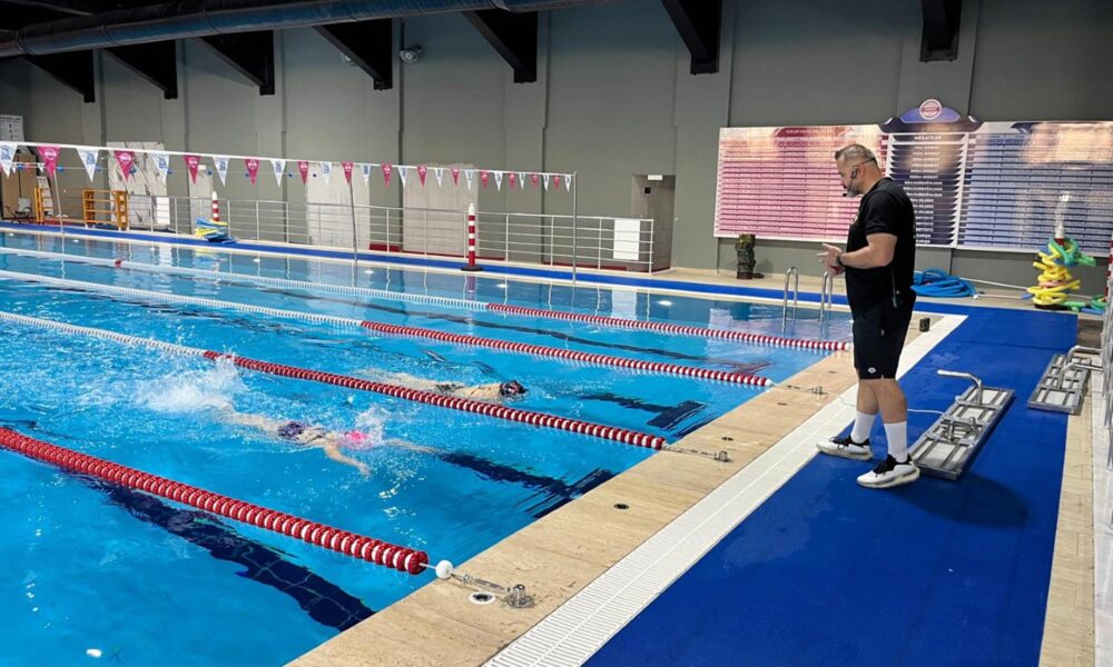 İzmirli milli yüzücü Barış Arslan'ın kızları Jasmin ve Juliet, küçük yaşta başladıkları yüzme sporunda dikkat çeken başarılara imza atıyor. Fotoğraf: Yağmur ÖNGÜN/İzmir,(DHA)