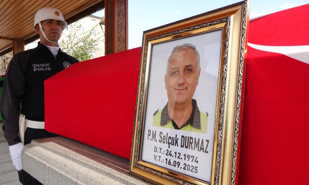 Aort damarı yırtılan trafik polisi, son yolculuğuna uğurlandı