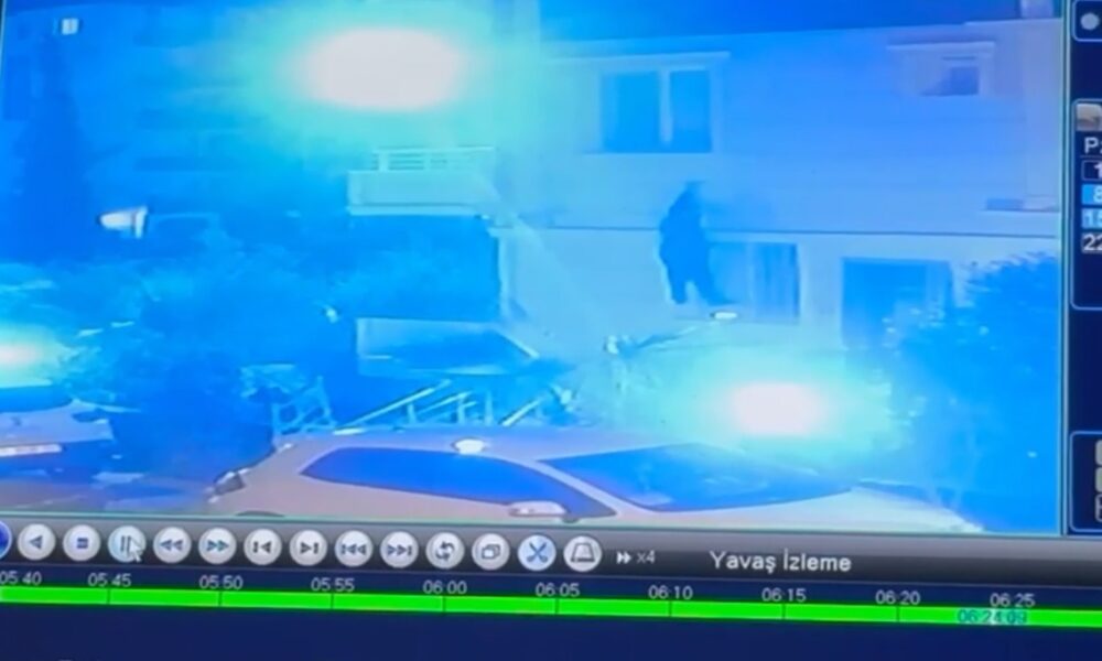 • Uğur Çalışkan, apart otelin penceresinden inerken güvenlik kamerasına yansıdı. Fotoğraf: Hatay,(DHA)