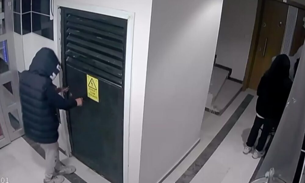 Şüphelilerin apartmana giriş ve çıkış anı ise güvenlik kamerasına yansıdı. Güvenlik kamerası görüntüsünde sokakta gezinen 3 kişinin apartmanların kapısını kontrol ettiği ve açık olan kapıdan içeriye girdiği görülüyor. Asansör ile apartmanın üst katına çıkan 3 kişi, 2 dakika sonra merdivenlerden kıyafetlerinin içine sakladıkları ayakkabılarla apartmandan çıkış yapıyor.