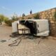 • Adıyaman'ın Besni ilçesinde, sürücüsünün direksiyon hakimiyetini kaybettiği otomobil apartman bahçesine düştü. Fotoğraf: Adıyaman, (DHA)