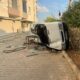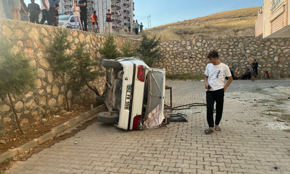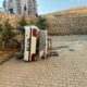 Apartmanın bahçesine devrilen otomobilin sürücüsü yaralandı