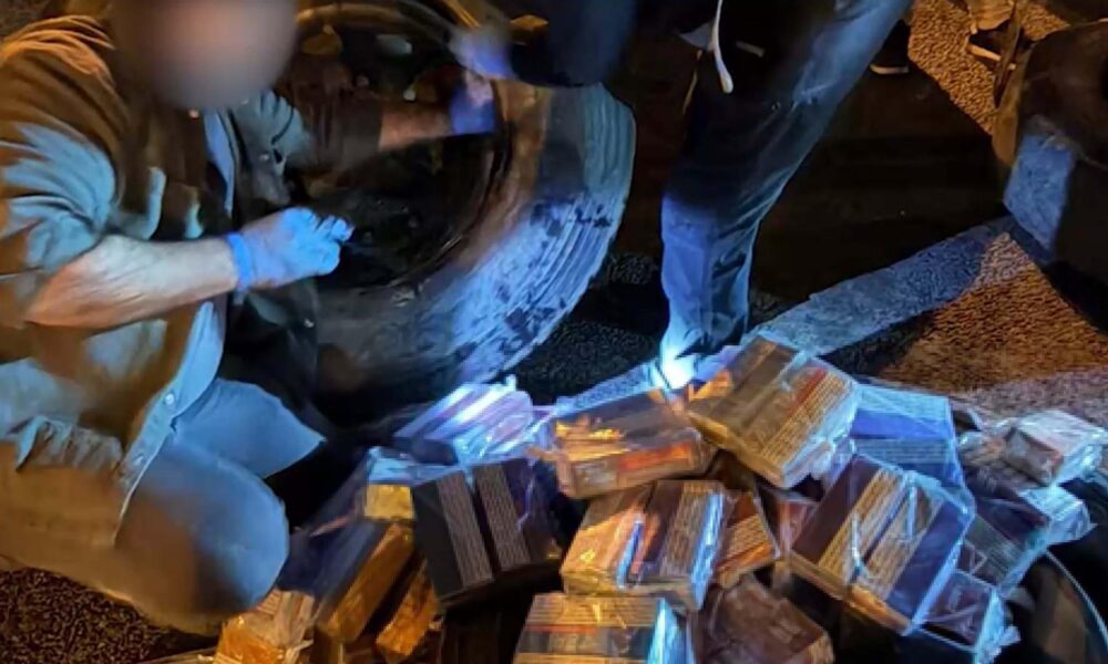 Araç lastiklerine gizlenmiş 8 bin 550 paket kaçak sigara ele geçirildi; 2 tutuklama