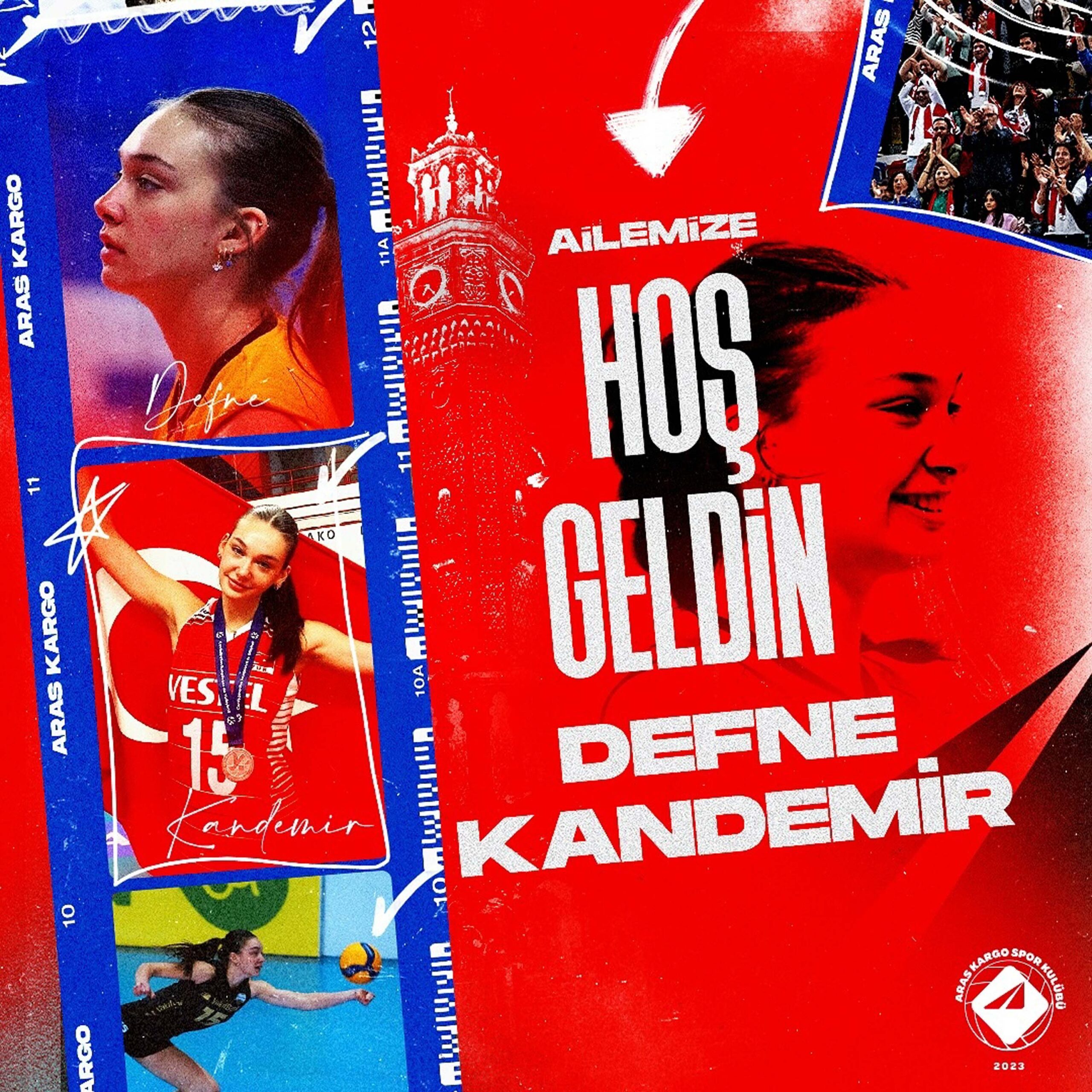 SULTANLAR Liginin yeni ekiplerinden Aras Kargo, dış transferde Vakıfbank altyapısından 18 yaşındaki smaçör Defne Kandemir ile el sıkıştı. İzmir temsilcisi transferle ilgili yapılan açıklamada, “Takımımız 2006 doğumlu smaçör Defne Kandemir ile anlaşma sağladı. Ailemize hoş geldin, Defne Kandemir. Aras Kargo Spor Kulübü formasıyla başarılar” ifadelerine yer verdi. Alt yaş gruplarında mili formayı giyen Defne, geçen sezon 1inci Ligde mücadele eden Vakıfbank B takımında görev yapıyordu.