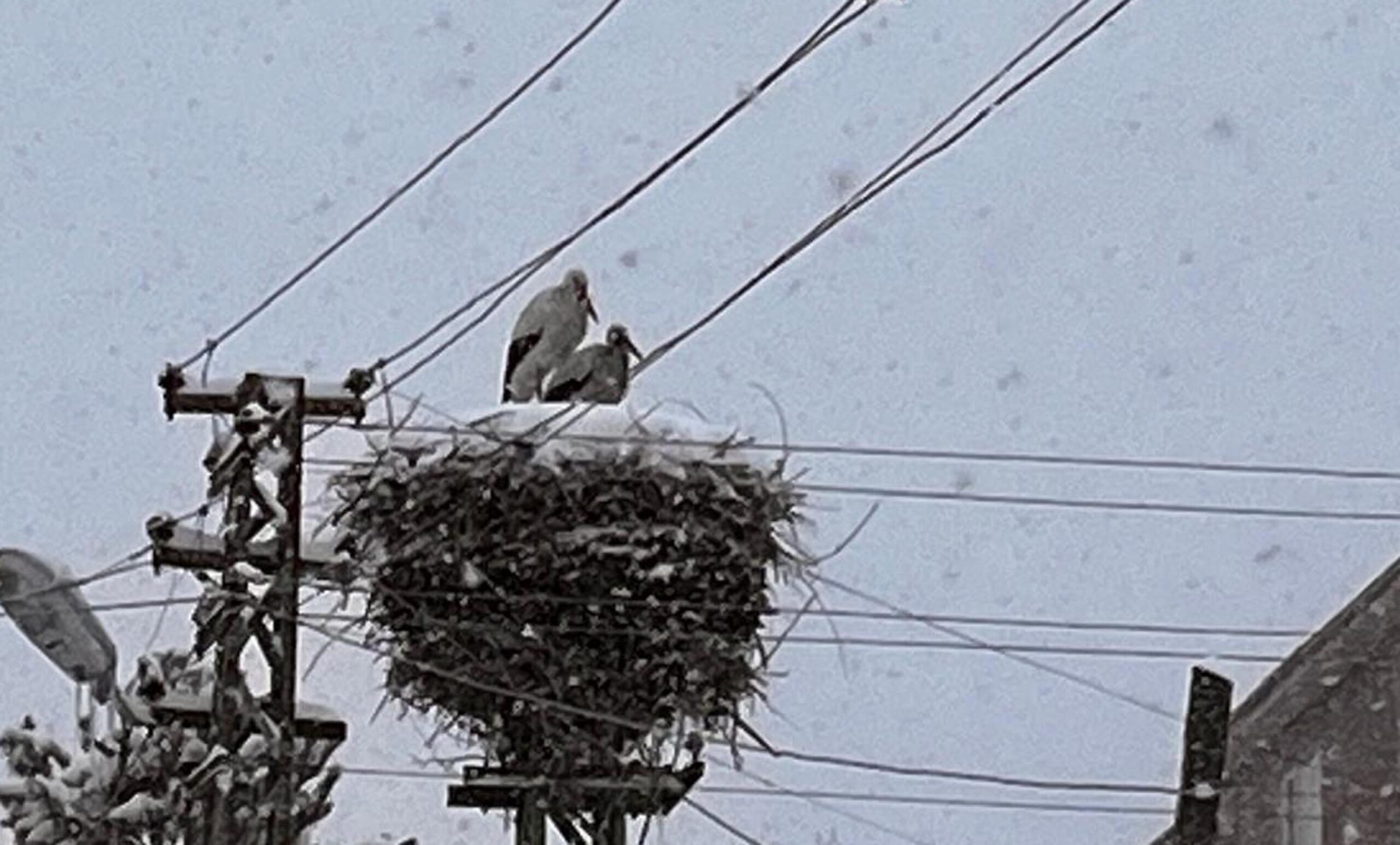 • Ardahan'a erken gelen leylekler, kara yakalandı. Kent merkezinde yaptıkları yuvalarına yerleşen leylekler, kar altında görüntülendi. Fotoğraf: Deniz BAŞLI/Ardahan,(DHA)