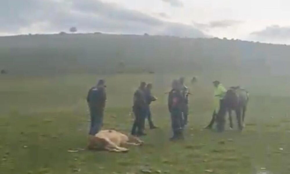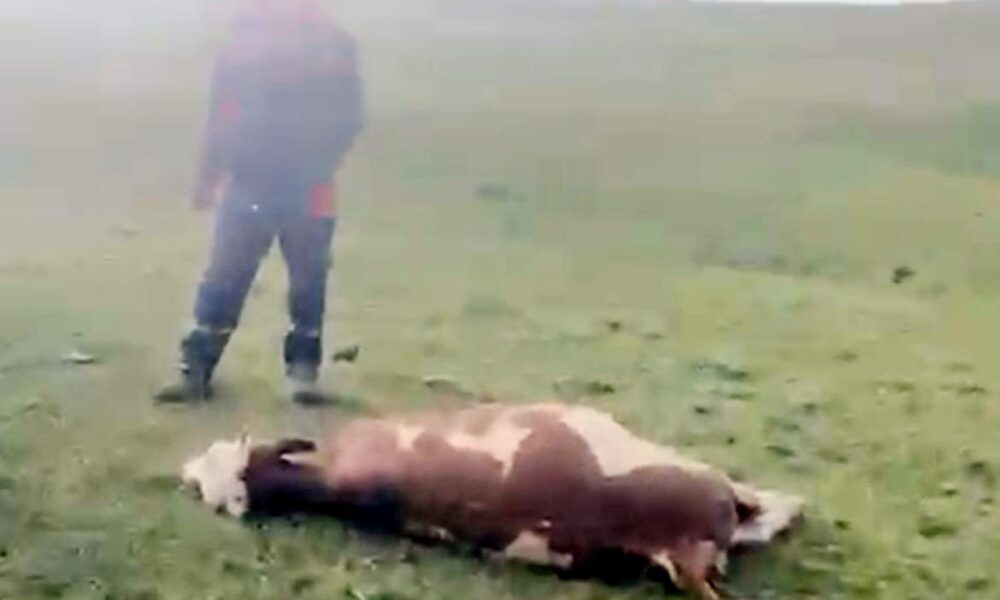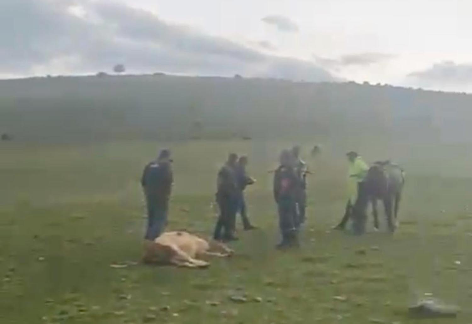 • Hanak ilçesine bağlı Dilekdere köyü merasına yıldırım düşmesi sonucu 3 inek öldü. Fotoğraf: Ardahan, (DHA)