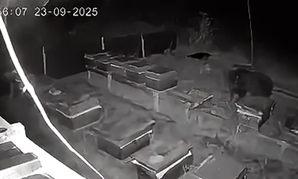 Arıcıların 4 kovan balını yiyen bozayı kamerada