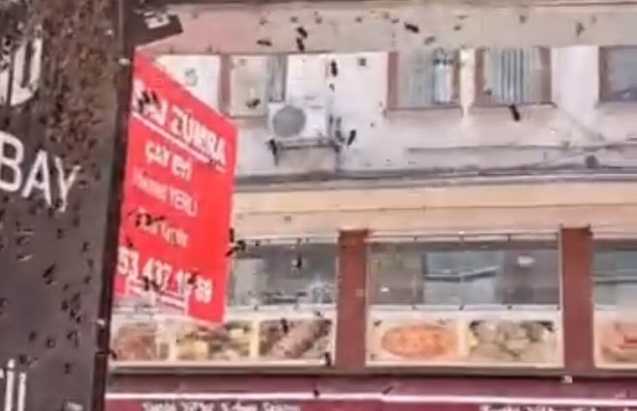 Osmangazi ilçesi Aktarhüssam Mahallesi Millet Sokak’taki bir iş hanının girişine tavana bal arıları oğul verdi. Sabah iş yerlerine gelen çalışanlar, arıları görünce sokakta beklemek zorunda kaldı. Esnafının haber verdiği arıcılıkla uğraşan Hüseyin Savcı, sokağa gelerek arıları kovana aldı. Çalışanlar, bir saatlik beklemenin ardından handaki iş yerlerine girdi.