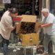 Arılar iş hanının girişine oğul verdi