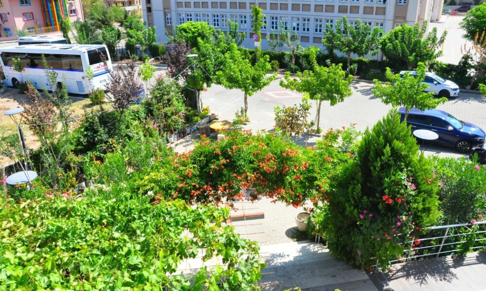 Manisa'da emekli Doktor Fahrettin Er (60) (Fotoğrafta), Şehzadeler ilçesindeki Sağlık Çarşısı'ndaki eczanelerin su arıtma cihazlarının atık sularını tek hortumda toplayarak, çarşısının arka sokağında kurduğu botanik bahçedeki bitkileri suluyor. Fotoğraf: