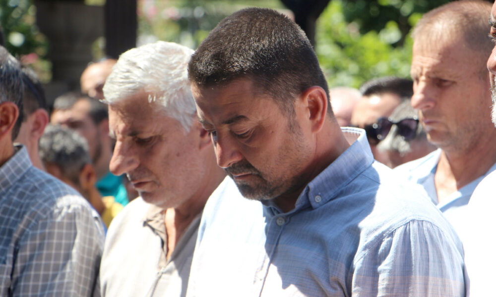 • Cenaze töreninde, baba Cem Pakarda (fotoğrafta), ayakta durmakta zorlandı. Fotoğraf: Olgay GÜLER / Edirne, (DHA)