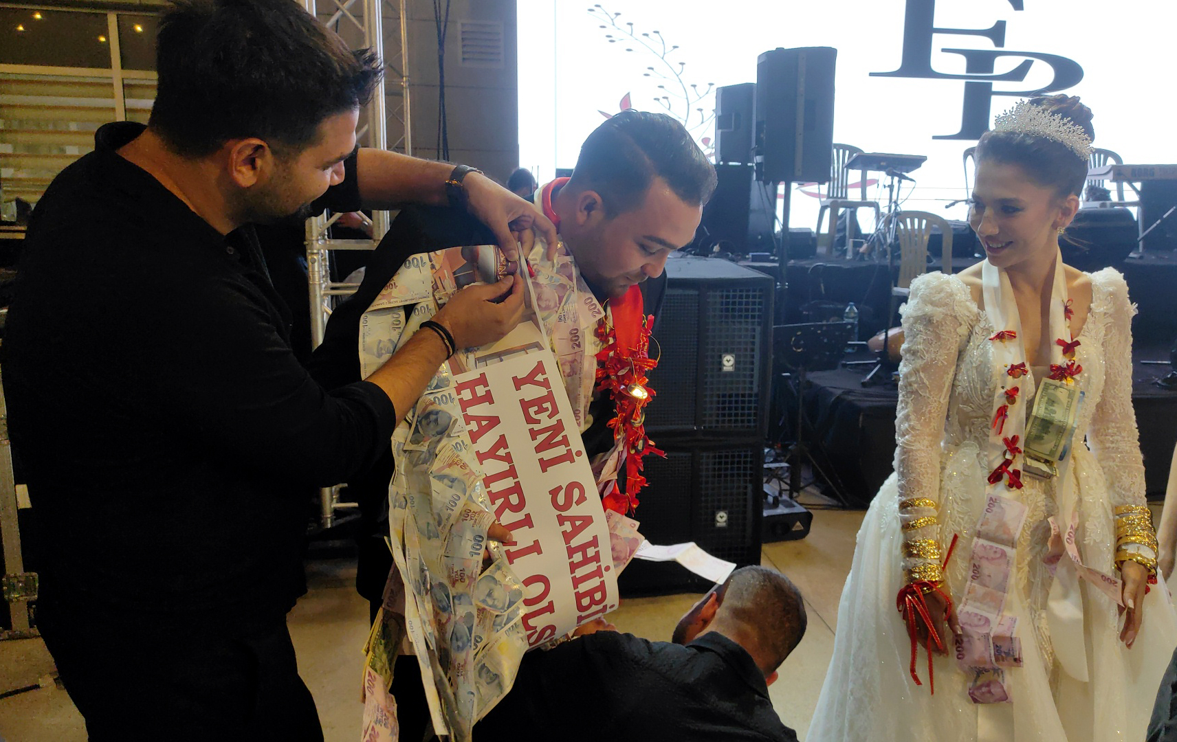 • Burdur'da Burak Gümüşay'a (30) düğününde arkadaşları tarafından 'Yeni sahibine hayırlı olsun' yazısı asıldı. Fotoğraf: Burdur, (DHA)