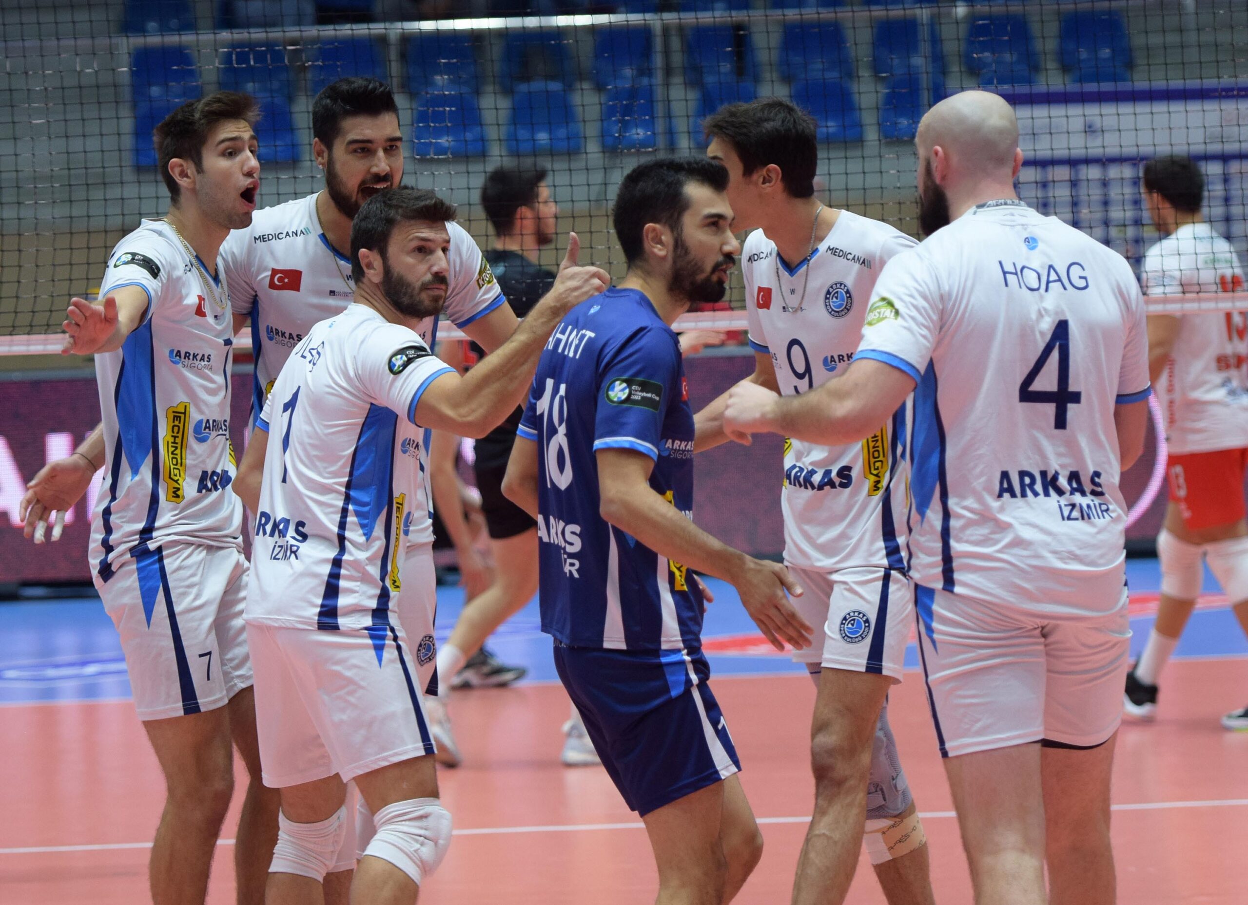 Erkekler CEV Voleybol Kupası 16’lı finaller turu ilk maçında Belçika’da Caruur Volley Gent’i 3-2 yenen Arkas Spor, yarın evinde rövanş maçına çıkacak. İzmir Atatürk Voleybol Salonu’nda oynanacak müsabaka saat 19.00’da başlayacak. Karşılaşmayı Szymon Pindral (Polonya) – Nuno Maia (Portekiz) hakem ikilisi yönetecek.