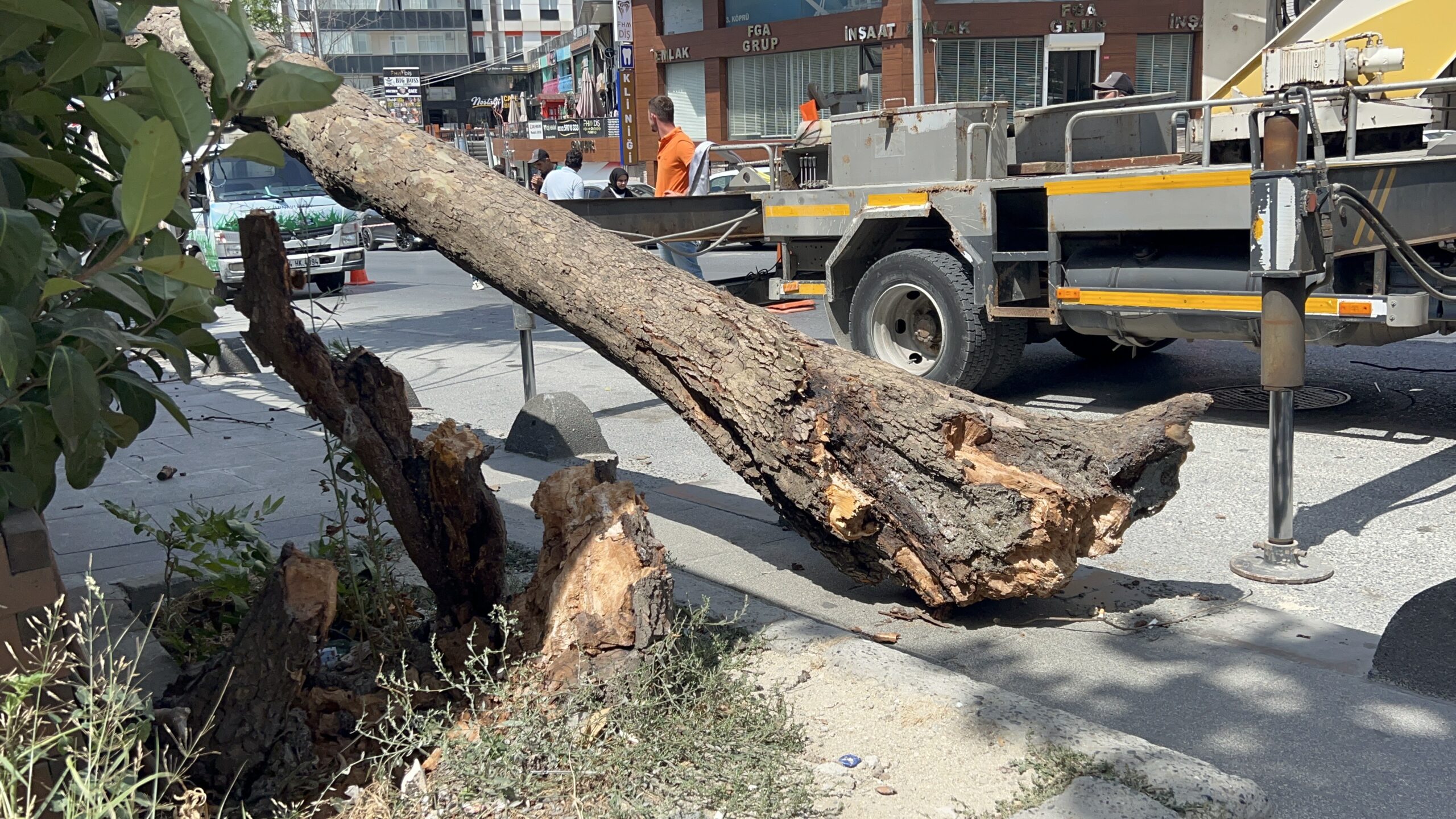 Arnavutköy’de çınar ağacı devrildi; yoldan geçenler kıl payı kurtuldu