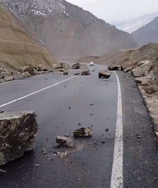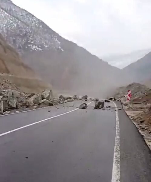 Artvin-Şavşat kara yolunun 25’inci kilometresinde öğle saatlerinde heyelan meydana geldi. Yamaçtan kopan dev kaya parçaları düştüğü kara yolunu ulaşıma kapattı. Toprak, taş ve irili ufaklı kaya parçalarının yola aktığını fark eden Oktay Çelik, aracını durdurdu. Diğer sürücüleri uyararak onların geçişini engelleyen Çelik, o anları cep telefonu kamerasıyla kayıt altına aldı.
