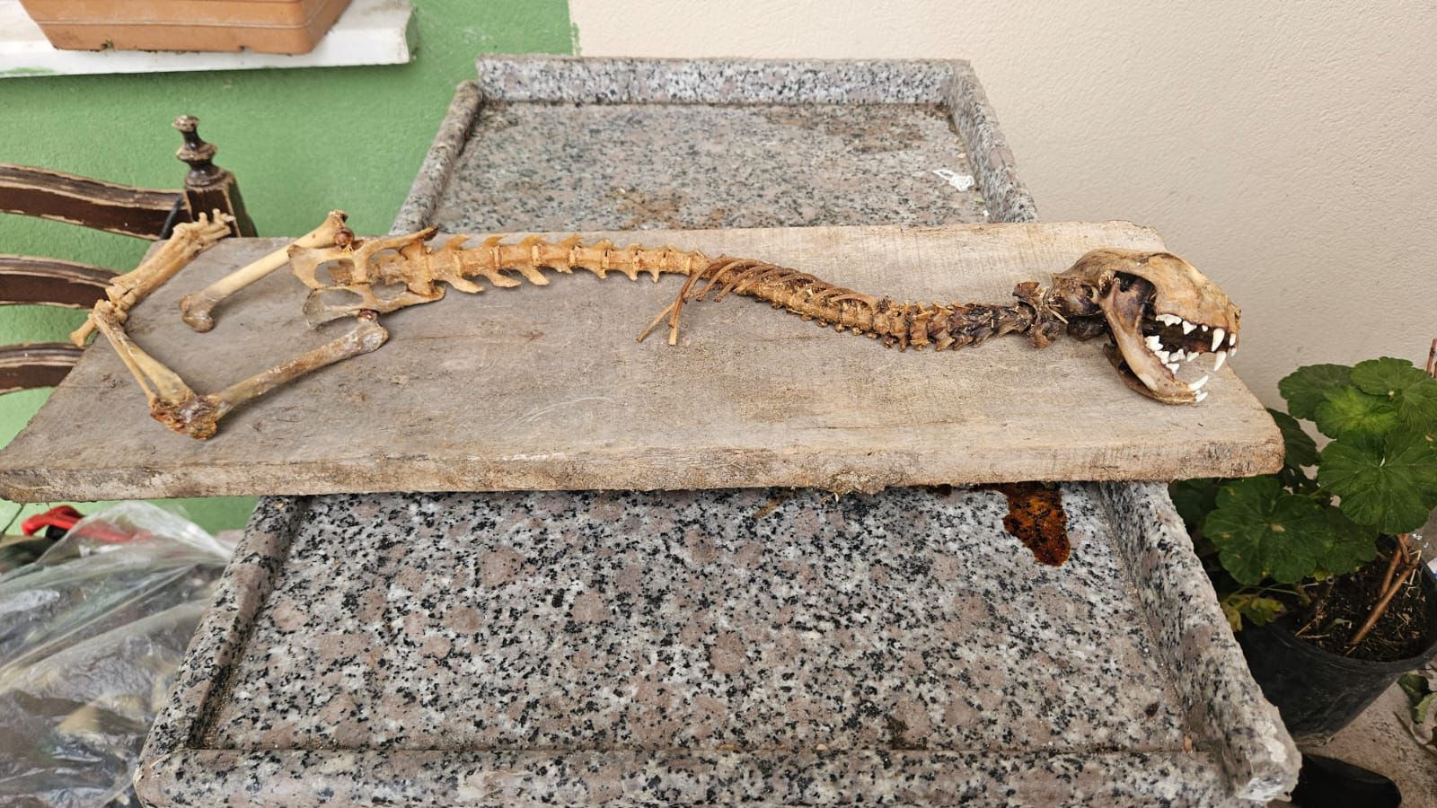 İlçeye bağlı Alanbaşı köyünün eski muhtarı Yavuz Turan, ahırındaki malzemelerin üzerini örttüğü naylonların arasında yırtıcı dişlere sahip, 55 santimetre boyunda hayvan iskeleti buldu. Turan, iskeletin hangi hayvana ait olduğunu ayırt edemeyince durumu Tarım ve Orman İlçe Müdürlüğü ile DKMP görevlilerine bildirdi. Gelen ekipler, iskeleti koruma altına aldı. Yapılacak inceleme ile iskeletin hangi tür hayvana ait olduğu tespit edilecek.