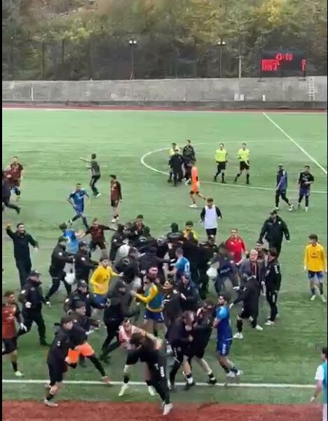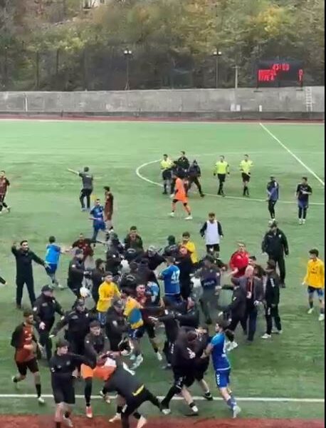 Bölgesel Amatör Ligi karşılaşmasında Murgul Belediyespor, sahasında Rize Atletik Spor Kulübü’nü konuk etti. Murgul İlçe Stadı’ndaki maçın 36’ıncı dakikasında Rize Atletik oyuncusu Enes Türüt’ün attığı golle konuk ekip 1-0 öne geçti. Golden sonra oyun devam ederken ilk yarının son bölümünde 2 takım oyuncuları arasında gerginlik yaşandı. Hakemin ilk yarıyı bitiren düdüğü çalmasıyla iki takım oyuncuları arasında çıkan sözlü tartışma kısa sürede büyüyerek kavgaya dönüştü. Sahada oyuncular birbirine tekme ve yumruklarla saldırdı. Kulüp yöneticileri, özel güvenlik ve polis ekipleri araya girerek olayları yatıştırmaya çalıştı. Stadyum hoparlörlerinden “Sevgili taraftar, lütfen sahaya girmiyoruz, sahaya yabancı madde atmıyoruz” şeklinde anonslar yapıldı. Saha içine yayılan olaylar, polis ekiplerinin müdahalesiyle sonlandırıldı. Sahada yaşanan kavga ve arbede anları cep telefonu kameralarına da yansırken, karşılaşma ise maçın hakemi tarafından ertelendi.