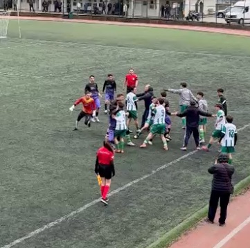 Artivin’de U18 Ligi şampiyonluk maçında Borçka ilçe Stadı’nda Hopa Eğitim Spor ile Yeşil Artvin Spor karşı karşıya geldi. Karşılaşmanın 77nci dakikasında Yeşil Artvin Sporun skoru 2-0a getirmesinin ardından sahada futbolcular arasında başlayan tartışma, kısa sürede büyüyerek tekme ve yumrukların havada uçuştuğu kavgaya dönüştü. Sahada yaşanan arbede, görevliler ve her iki takımın teknik ekiplerinin araya girmesiyle güçlükle yatıştırılırken, mücadelenin hakemi güvenlik gerekçesiyle maçı tatil etti.