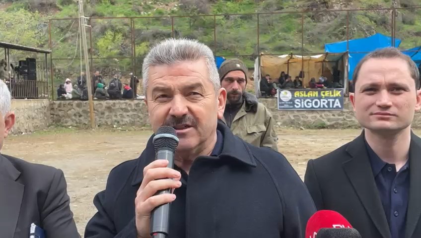 • Güreşleri takip eden Artvin Valisi Turan Ergün(mikrofon elinde), açıklamalarda bulundu. Fotoğraf: Artvin,(DHA)