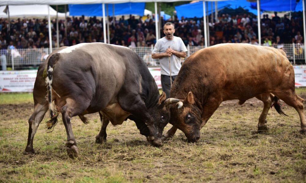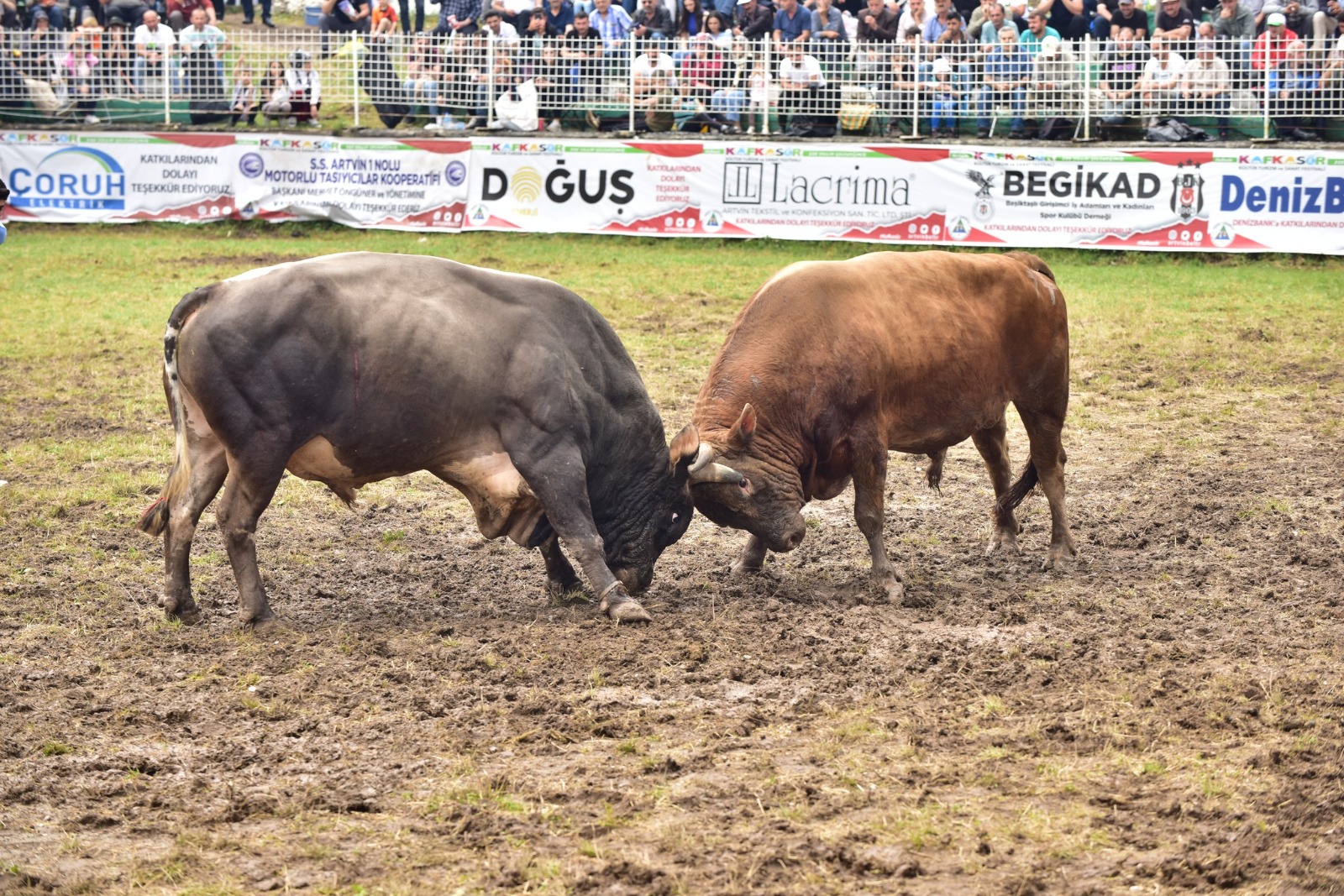 • Artvin'de 43'üncü Kafkasör Kültür Turizm ve Sanat Festivali kapsamında düzenlenen boğa güreşleri 3'üncü gününde sürüyor. FOTOĞRAF: Nusret DURUR/ARTVİN, (DHA)