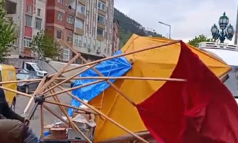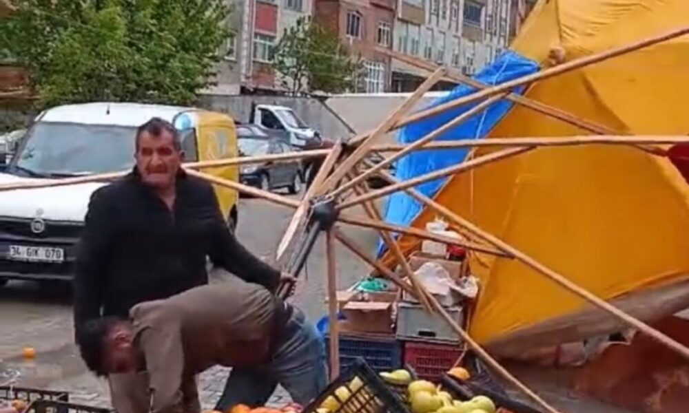 Artvin’de fırtına etkili oldu; tezgahlar devrildi, sebze ve meyveler yola döküldü