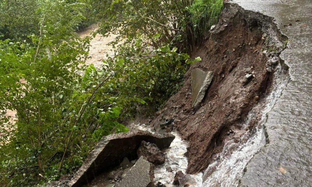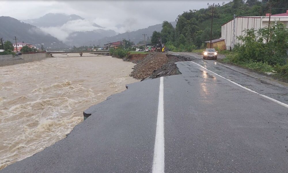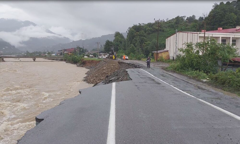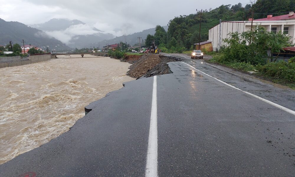 Artvin’de taşkın ve heyelanlara neden olan yağışta yol çöktü